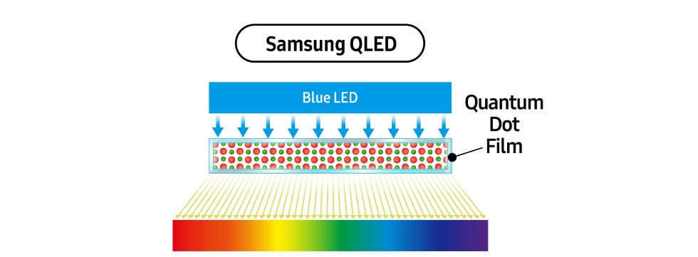 A fundamental physics comparison between self-emissive organic diode structures and transmissive quantum dot enhancement layers.