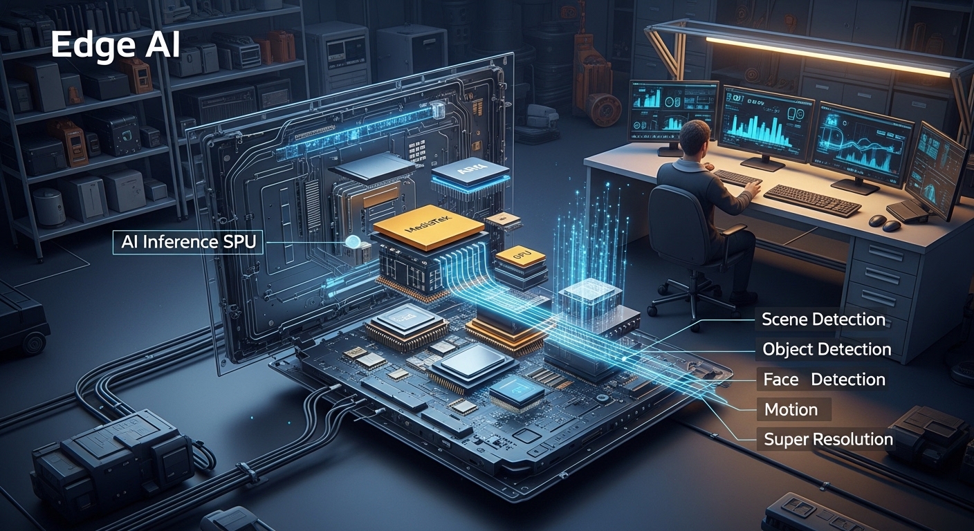 Technical analysis of on-device machine learning inference in Google TV SoCs, covering NPU-driven Scene Detection, Object Detection, and Super Resolution pipelines.